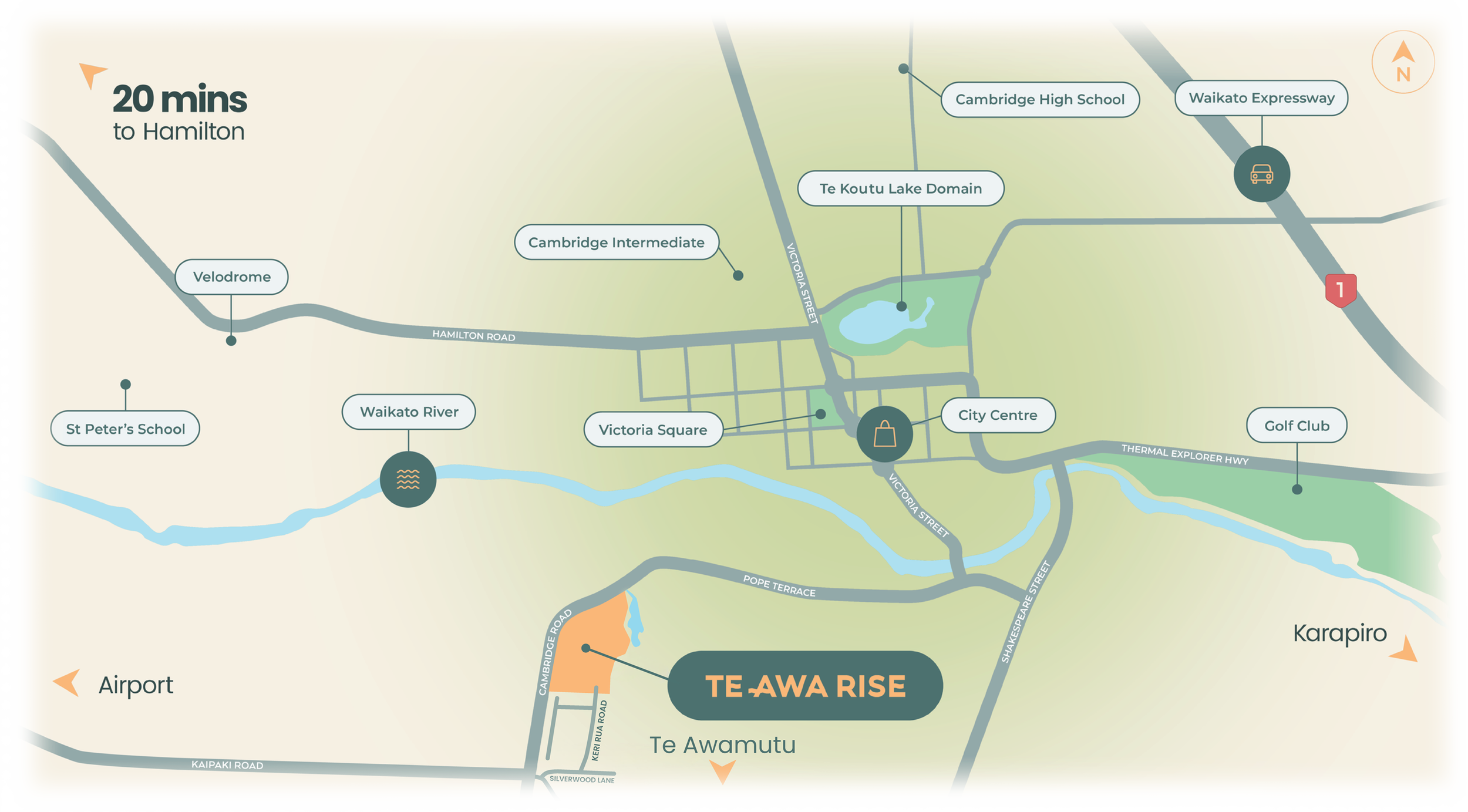 Cambridge’s newest subdivision, Te Awa Rise.